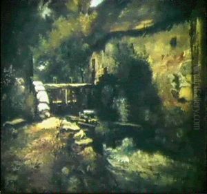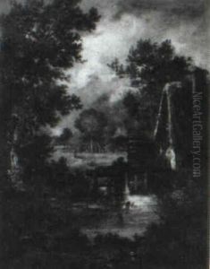 A Cart By A Watermill In A River Landscape