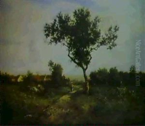 A Figure In A Landscape, Near A Cottage