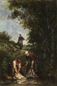 Washerwomen By A Pond