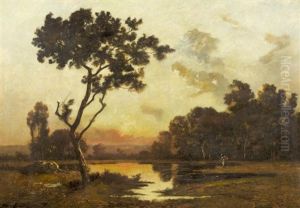 Landschaft Bei Barbizon Im Abendlicht