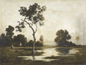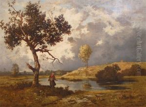 Landschaft Mit Bauerin Und Teich