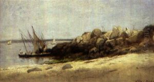 Personnages Et Barques Au Bord De L"etang