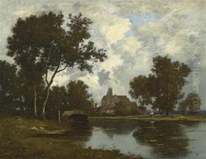 Flusslandschaft Mit Kirchdorf