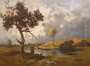 Leon Richet's contributions to French landscape painting continued the traditions of the Barbizon school and influenced the subsequent generations of landscape artists. His dedication to capturing the spirit of the French countryside made him a respected figure in the art community of his time. After a productive career, Leon Richet passed away in 1907, leaving behind a legacy of serene and evocative landscapes that continue to be appreciated by art lovers and collectors worldwide.