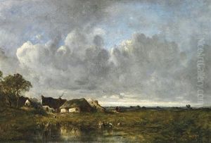 Landschaft Mit Bauernhausern Und Figurenstaffage