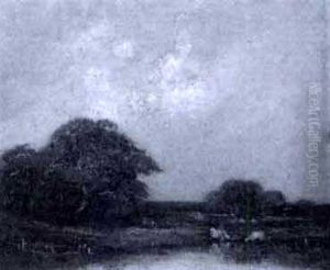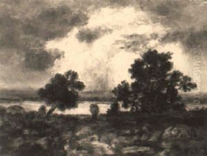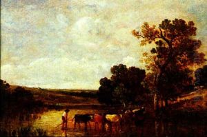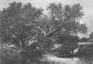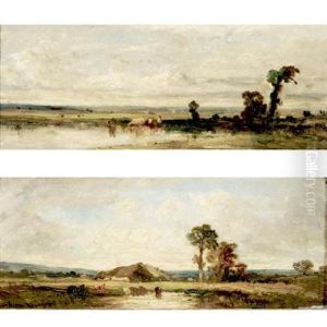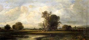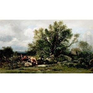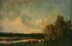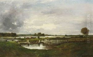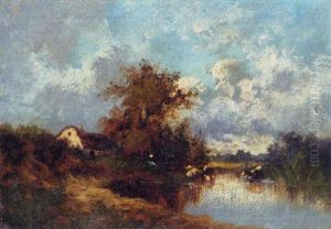 Weite Franzosische Fluslandschaft Mit Einem Kuhhirten Am Ufer