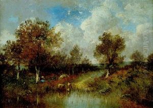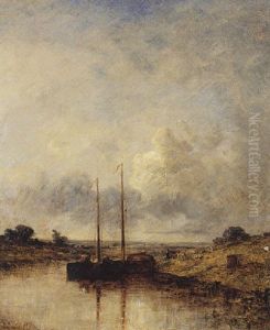 Weite Franzosische Fluslandschaft Mit Einem Kuhhirten Am Ufer