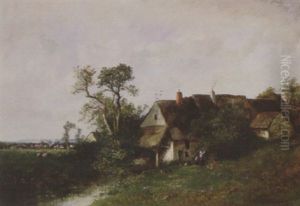 Landschaft Mit Bauernhausern Und Figurenstaffage
