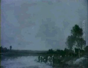 Figures And Cattle In A River Landscape