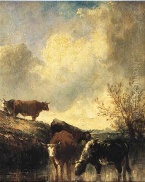 Cattle Watering In A Meadow