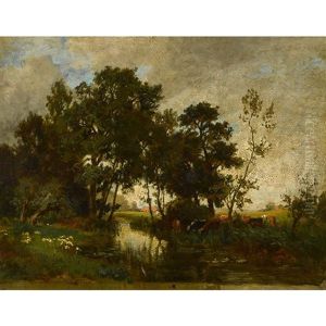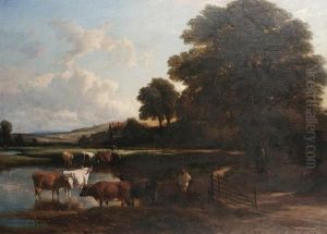 Landschaft Mit Kuhen An Der Tranke