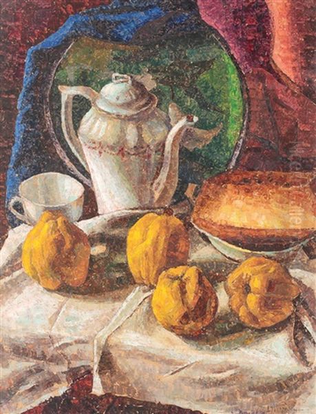 Bring the timeless beauty of Leon Viorescu's Still Life With Quinces And Tea Pot into your home with a handmade oil painting reproduction. Carefully recreated on canvas by skilled artists using traditional techniques, this piece captures the delicate brushwork, subtle light, and vibrant color of the original masterpiece. With museum-level quality and rich texture, it brings elegance and artistic depth to any space. Enjoy free shipping and make this masterpiece a part of your personal collection.