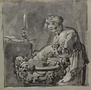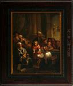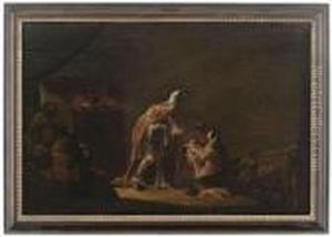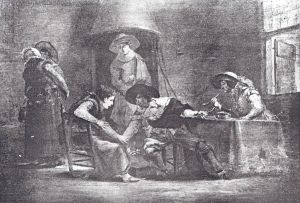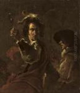 A Cavalier And A Young Peddler Playing Dice, With A Monk Looking On