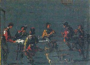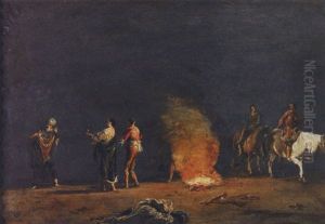 A Moonlit Landscape With Travellers Leading Their Pack Mules, A Resting Goat Herd Beyond