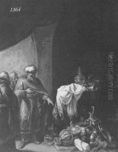A Woman In A Bedchamber Surrounded By Riches And Other Figures