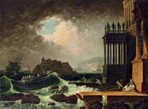 Schiffbruch Vor Kastell Und Ruinen