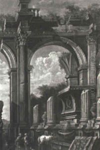 (2) Beggars Standing In The Ruins Of An Arcaded Building... Elegant Figures Walking Through A Barrel...
