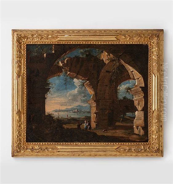 Belebte Kustenlandschaft Mit Ruinen Oil Painting by Leonardo Coccorante