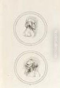 Caricatures Of An Old Man In Academic Dress, In Profile To Theright, And An Old Woman Wearing A Cap, In Profile To The Left