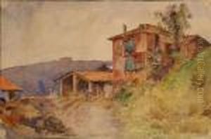 "vue D'un Quartier De Nice" Aquarelle, Signe Enbas A Gauche, Forme Ovale, Cadre Dore 29 X 36 Cm