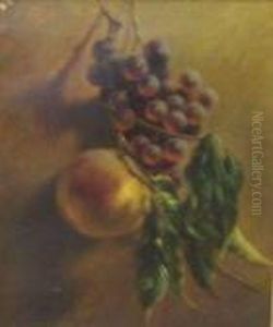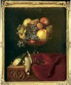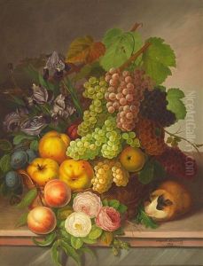 Stilleben Mit Weintrauben, Apfeln, Zwetschgen, Iris, Rosen Und Merrschweinchen