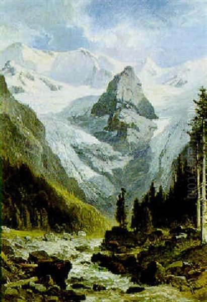 Gebirgslandschaft Oil Painting by Leopold Munsch