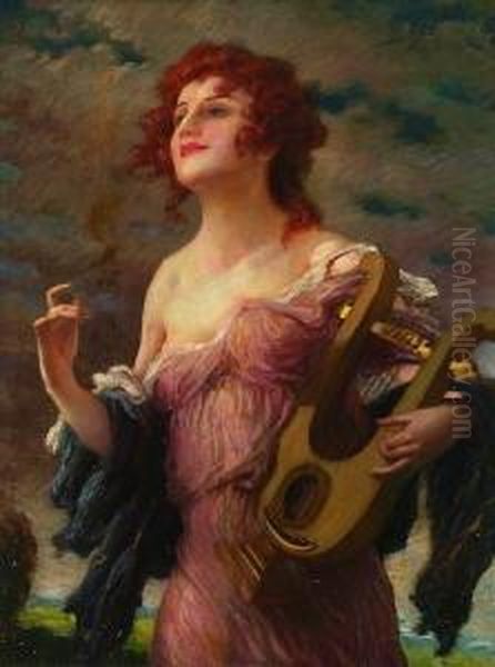 Junge Frau Mit Einer Lyra.