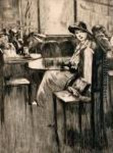 Dame, Eine Pferdedroschke Rufend