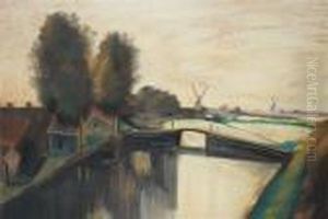 Peasants In Dutch Landscape With Windmill