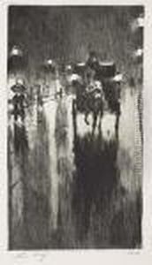 "nachtliche Impression (mit Droschke Vor Lokomotivendampf)". 1924