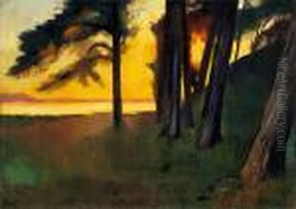 "abend An Einem See Mit Kiefernwald (grunewaldsee?)"