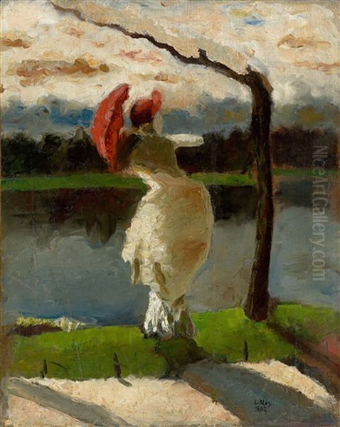 "dame Mit Sonnenschirm Am Ufer Der Loire"