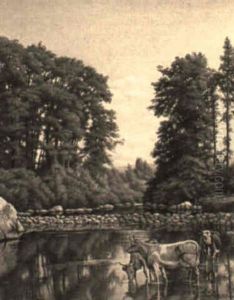 Landscape With Sheep Grazing And Watering