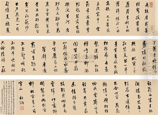 Bring the timeless beauty of Li Dune's Poems In Running Script into your home with a handmade oil painting reproduction. Carefully recreated on canvas by skilled artists using traditional techniques, this piece captures the delicate brushwork, subtle light, and vibrant color of the original masterpiece. With museum-level quality and rich texture, it brings elegance and artistic depth to any space. Enjoy free shipping and make this masterpiece a part of your personal collection.