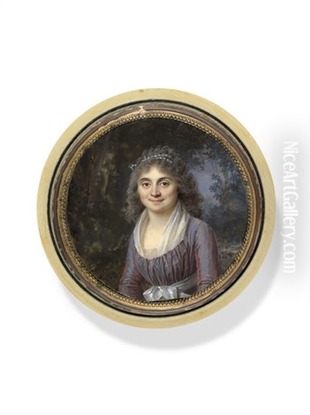 A Lady In Mauve Dress In A Woodland Landscape