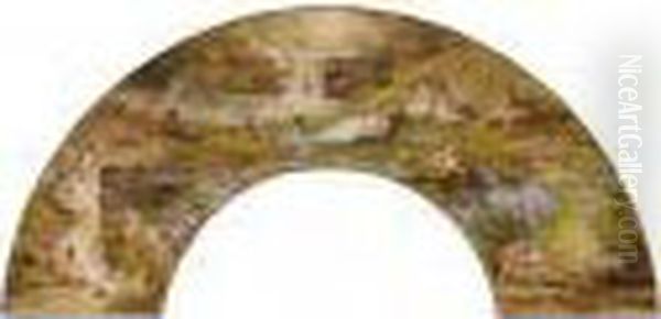A Midsummer Night's Dream - I Know A Bank Whereon The Wild Thyme Grows..., Monogrammed, Fan Design, Watercolour On Silk, Overall 13 X 54.5 Cm.; 5 1/4 X 21 In