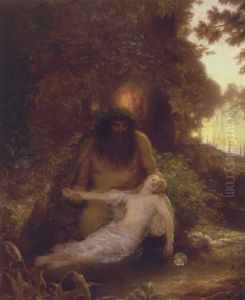 Aftenstemning Med Vildmand Og Skovnymfe