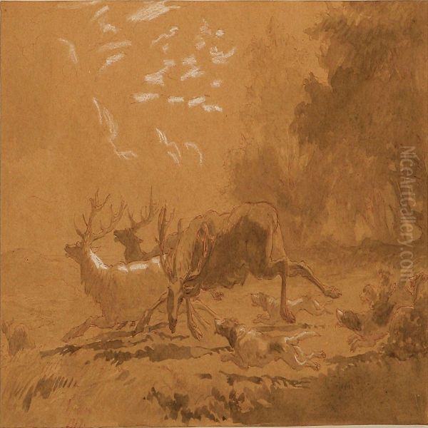 Hunting Dogs And Fleeing Elks