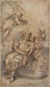 Attribuito A San Giuseppe Con Gesu' Benedicente Olio Sutela