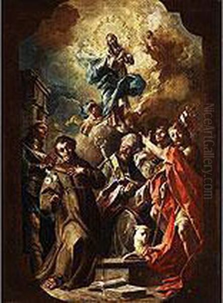 Maria Immaculata In Wolken Uber Einer Gruppe Von Heiligen