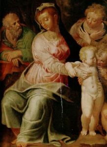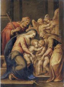 The Holy Family With Saints Elizabeth And The Infant Saint John The Baptist, Two Angels Behind