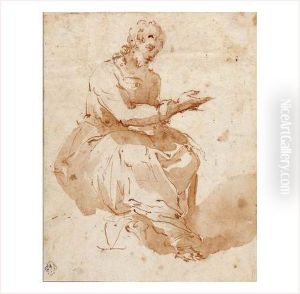 The Holy Family With Saints Elizabeth And The Infant Saint John The Baptist, Two Angels Behind Oil Painting by Lorenzo Sabatini