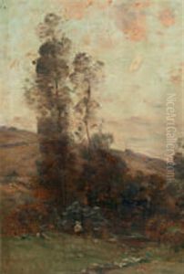 Landscape With Shepherdess And Flock Near A Wooded Pond