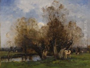 Landschaft Mit Baumen Und Kuhen