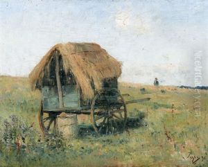 Strohbedeckter Karren Auf Offenem Feld