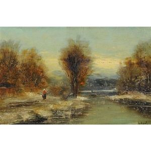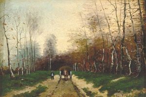 Abendliche Landschaft Mit Heimkehrenden Reisigsammlern
