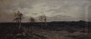 A Winter Landscape With A Peasant Woman And Child On A Snowy Path At Sunset