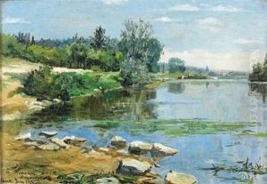 River Landscape With Cottage