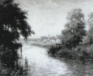Cottages Near A Flowering Riverbank