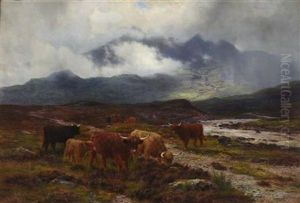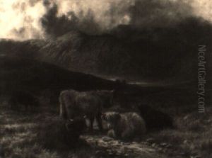 A Highland Landscape With Drovers And Cattle At A Ford